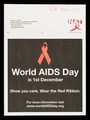 World AIDS day is 1st December : show you care. Wear the red ribbon : for more information visit www.wolrdAIDSday.org / National AIDS Trust.
