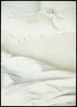 A bed with cream linen and a pillow case bearing the words 'SIDA' (AIDS) representing the transmission of AIDS in the bedroom. Colour silk screen print after J. Sterbak, 1993.