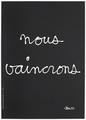 The message "We shall overcome" in white on black; referring to AIDS. Silk screen print after Ben Vautier, 1993.