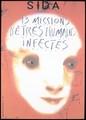 A face like a luminous skull with the message "AIDS, 13 million humans infected". Colour silk screen print after Zush,1993.