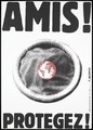 A condom with a red centre and the message "Friends! Protect!"; representing protection from AIDS. Colour silk screen print after Roman Cieslewicz, 1993.
