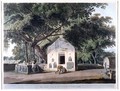 Banyan tree with Hindu shrine at Gaya, Bihar. Coloured aquatint by T. Daniell, 1796.