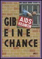 A man's arms hang on the bars of a prison window with the message 'Give those with AIDS a chance'; advertising the Deutsche AIDS-Hilfe. Colour lithograph, 199-.