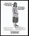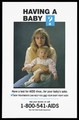 A woman holds a baby on her knee representing a warning to potential mothers to take an AIDS test by the New York State Health Department. Colour lithograph.