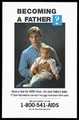A man in a blue shirt holding a baby on his knee representing a warning to potential fathers to take the AIDS test by the New York State Health Department. Colour lithograph.
