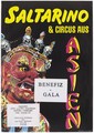 A red and gold decorated head with an open mouth adorned with skeletons wearing crowns representing an advertisement for Saltarino, an asian circus AIDS gala in support of children and families affected by AIDS and HIV; organised by the AIDS-Forum e.V. Colour lithograph.