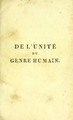 De l'unite du genre humain, et de ses varietes, ouvrage precede d'une lettre a Joseph Banks, baronet, et president de la Societe royale de Londres / par Fred. Blumenbach ; traduit du latin sur la troisieme edition par Fred. Chardel.