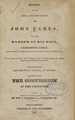 Report of the trial and conviction of John Earls : for the murder of his wife, Catharine Earls, late of Muncy Creek Township, Lycoming County, Pennsylvania : in the Court of Oyer and Terminer held at Williamsport, for Lycoming County, February term, 1836 : including the arguments of counsel at length, together with the confession of the prisoner / reported and prepared for publication by Wm. F. Packer & A. Cummings Jr.