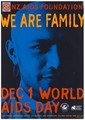 The face of a man with an earring representing an advertisement for World AIDS Day on 1st December by the New Zealand AIDS Foundation. Colour lithograph by Mark Graham.