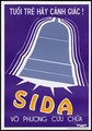 A vibrating bell with spikes below emitting the word 'SIDA'; an AIDS warning to youths. Colour lithograph by Huỳnh Vqan Thuqan, 1992.
