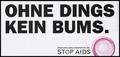 A warning about safe sex in German with a pink condom; one of a series of 'Stop AIDS' campaign posters by the Federal Office of Public Health. Colour lithograph.
