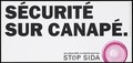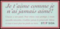 A message in pale red and turquoise lettering about being safe in new relationships with a condom within a pale red border; French version of a series of 'Stop SIDA' [Stop AIDS] campaign posters by the l'Aide Suisse contre le SIDA, in collaboration with the Federal Office of Public Health. Colour lithograph.