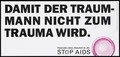 A message in blue lettering in German that 'I don't take condoms because women find them disgusting' and in black lettering 'men gossip'; one of a series of posters from a 'Stop AIDS' campaign by the AIDS-Hilfe Schweiz in collaboration with the Office of Federal Health. Colour lithograph.