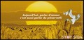 Bales of wheat in a yellow field with a pair of white socks floating against a yellow sunset representing an advertisement for safe sex; French version of a series of 'Stop SIDA' [Stop AIDS] campaign posters by the Federal Office of Public Health, in collaboration with l'Aide Suisse contre le SIDA. Colour lithograph.