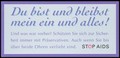 A message in lilac and pale blue lettering about being safe in new relationships with a condom within a lilac border; German version of a series of 'Stop SIDA' [Stop AIDS] campaign posters by the AIDS-Hilfe Schweiz, in collaboration with the Federal Office of Public Health. Colour lithograph.