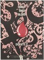 A drop of red blood amidst a black cross, star and crescent; set against a splattered pink and black background with a message to donate blood not shed it; an AIDS prevention advertisement by the Voluntary Health Association of India and the Manipur Voluntary Health Association. Colour lithograph by Ramesh Sukumar for VHAI, ca. 1995.