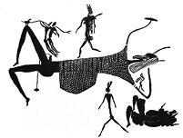 M0015097: Prehistoric burial scene represented in a rock-painting, Zimbabwe