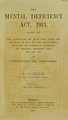 The Mental Deficiency Act, 1913 : together with the regulations and rules made under the provisions of that Act, the departmental circulars, the Elementary (Defectice and Epileptic Children) Acts, 1899 and 1914, and, introduction and annotations / by R.A. Leach.