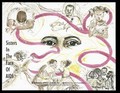 Two eyes above a woman and child and other illustrations of groups of black people interwoven with a red banner bearing words including 'give love' and 'compassion'; advertisement by the National Urban League, Inc. for those with or affected by AIDS. Colour lithograph.