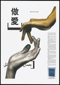 The index fingers of two hands touch, one painted silver, the other gold with the words 'love without fear' in Finnish, and partly showing in Chinese and Arabic; an advertisement for a free handbook about HIV and AIDS by the Folkhälsoinstitutet [National Public Health Institute]. Colour lithograph by Garbergs, ca. 1995.