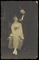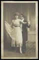 Two actors, one in drag, dancing together on stage. Photographic postcard, 1918.