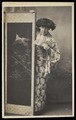 A man in drag poses wearing mauve attire. Photograph, 189-.