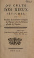 Du culte des dieux fétiches, ou, parallèle de l'ancienne religion de l'Egypte avec la religion actuelle de Nigritie ... / [Anon].