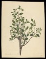 Various leaf forms and flower parts. Watercolour by I. Sawkins.