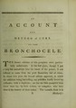 An account and method of cure of the bronchocele, or, Derby-neck : with some reasons attempted, for considering the bronchocele and dropsy of the ovarium, as kindred diseases, and a plate accurately engraved, representing the figure of the disease / by Thomas Prosser.