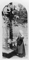M0014426: Three women at the Fontaine des Sept-Saints, near Yffiniac (Cotes du Nord), with the statues removed from the niches