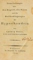 Untersuchungen über den Begriff, die Natur und die Heilbedingungen der Hypochondrie / von Ludwig Storr.
