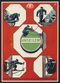 A rowing boat ("eight") going straight, representing working safely when sober. Colour lithograph for the Berufsgenossenschaft der Feinmechanik und Elektrotechnik, ca. 1999.