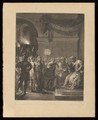 Pontius Pilate, seated on the judgment seat, receives a message from his wife that he should have nothing to do with Christ. Engraving after J. Stella.