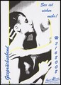 A jagged yellow, blue and red design with four vignettes representing relationships and messages in German emphasizing self-help by AIDS patients: ; ; an advertisment for the Deutsche AIDS-Hilfe e.V. Colour lithograph for the for the Deutsche AIDS-Hilfe e.V., 1996.