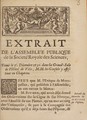Extrait de l'Assemblée publique de la Societé royale des sciences, : tenuë le 7e. Décembre, 1730. dans la Grand'-sale de l'hôtel-de-ville, M M. les Consuls y assistant en chaperon.