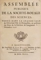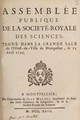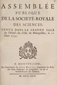 Assemblée publique de la Societé-royale des sciences : tenuë dans le grande sale de l'hôtel-de-ville de Montpellier, le 25 avril 1743.