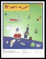 Recto: a figure sits at a desk looking at a condom with a row of models of the penis surrounded by random images including a robot, a television, a figure on a skateboard; advertisement by ArtReach for Prototypes, a Center for Innovation in health, mental health and social services. Colour lithograph by John Tat.