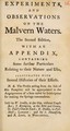 A treatise on the nature, properties, and medicinal uses of the waters of Pyrmont, Spa, and Seltzers : Also of the Malvern waters, from Dr. Wall's observations. Being a proper supplement to Dr. Russel's [sic] Dissertation on the use of sea water, &c.