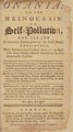 Onania, or, The heinous sin of self-pollution : and all its frightful consequences (in both sexes) considered with spiritual and physical advice to those who have already injured themselves by this abominable practice.