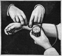 M0018852: Illustration of a spygmomanometer in use, 1881