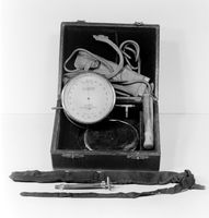 M0018413: Early version of the Hill and Barnard sphygmomanometer with metal pump