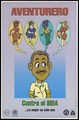 A cartoon figure of a man with a moustache with 4 speech bubbles above his head containing images of women with the label 'Adventurer' in Spanish; an advertisement for the fight against AIDS by Prisa, OPS/OMS, Sespas and Procets. Colour lithograph, ca. 1997.