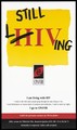The letter 'H' of 'HIV' crossed out and 'L' inserted to read 'Living'; advertisement by the Comité des personnes atteintes du VIH du Québec. Colour lithograph.