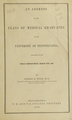 An address to the class of medical graduates of the University of Pennsylvania, delivered at the public commencement, March 29th, 1856 / by George B. Wood.