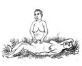 M0001863: Book illustration depicting depicting one of the stages of childbirth