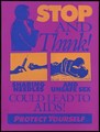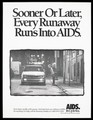 A prostitute approaches a man in a car; advertisement by the State of California AIDS Education Campaign. Lithograph.
