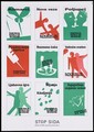 Nine green and red diagrams with Croatian lettering showing how AIDS is not transmitted including top right, an insect [bite] to bottom right a heart [for faithfulness in marriage]; one of a series of six posters from the Stop AIDS campaign. Colour lithograph.