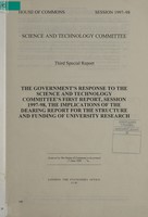 The Government's response to the Science and Technology Committee's first report, Session 1997-98 : The implications of the Dearing Report for the structure and funding of university research third special report / Science and Technology Committee.