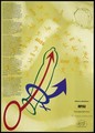 The green outline of a condom inside which the male symbol points upwards representing the man's penis next to the symbol for bi-sexuality; a safe-sex and AIDS prevention advertisement by the RFSU, Norwegian Red Cross, The Norwegian Confederation of Sports and the Norwegian AIDS Association. Colour lithograph, ca. 1990's.
