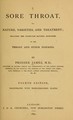 Sore throat : its nature, varieties, and treatment : including the connection between affections of the throat and other diseases / by Prosser James.
